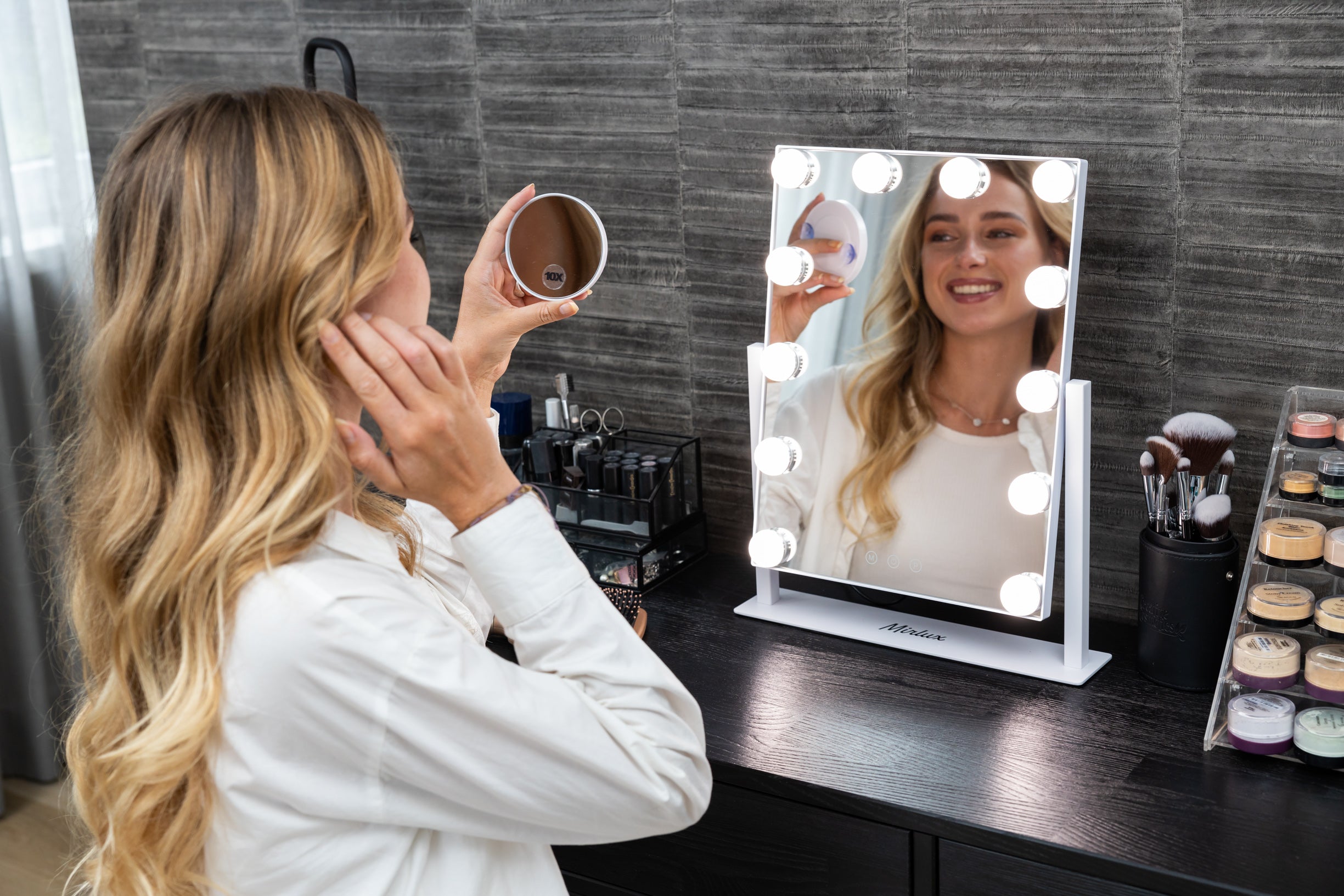 Miroir de maquillage - Hauteur réglable - Noir - Grossissement 1-10x